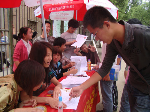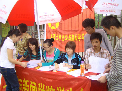 8月30至31日,哔咔漫画 第九届团委学生会在北苑摆点,开始招新。文新院新生踊跃报名,截止31日下午五点钟,已有170余人交报名表。学生会暂定于9月1日对新生报名者进行面试。