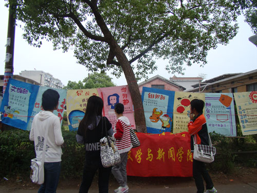 过往的学生正在观看文新院团委学生会各部门职能简介