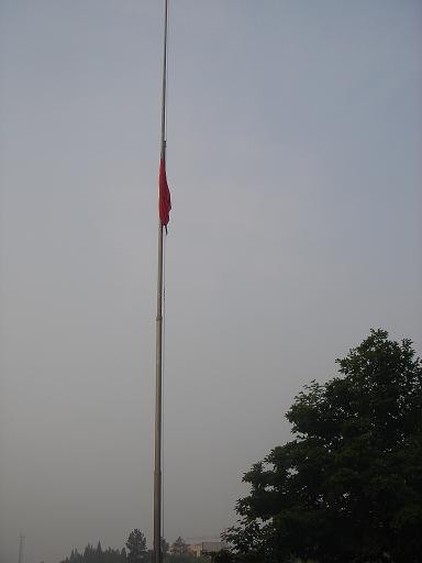 5月19日,在中国历史上也是一个不寻常的日子。为悼念汶川大地震中的死难者,全国为期三天的“哀悼日”正式开始。全国降半旗向死难者致哀,国民享国哀,国旗第一次为普通国民而降。这天,湘大的国旗同样降半,06广电一班见证了湘大的半旗之哀。