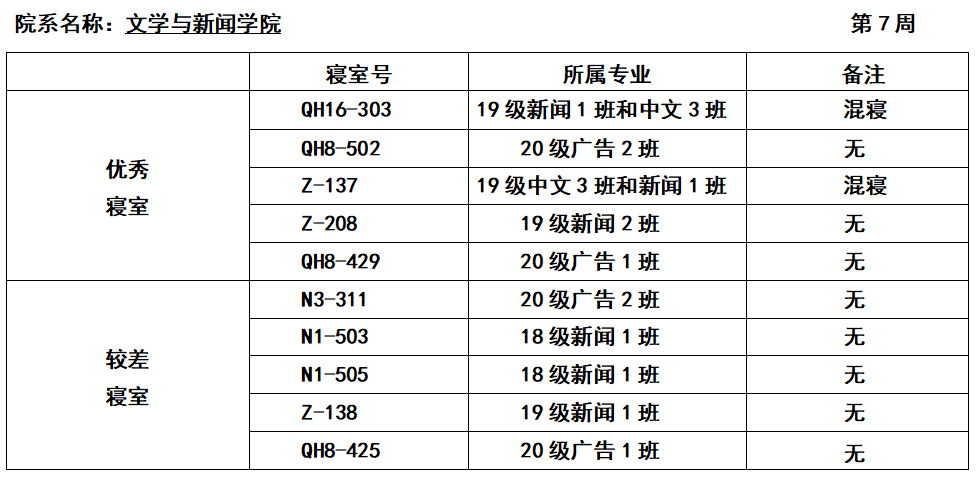 根据哔咔漫画 生活部下发文件《哔咔漫画 寝室评分细则》要求,结合生活部日常查寝情况,现将第7周优差寝情况结果通知如下: