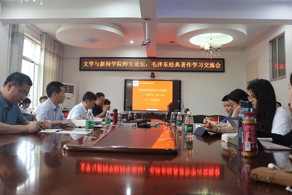 在第三教学楼317会议室举办了“学原文·悟原理”经典著作学习交流系列活动首场师生论坛。论坛以“毛泽东经典著作学习交流会——兼谈文风、话风、会风”为主题,邀请季水河教授、王洁群教授进行主讲,并与博士、硕士、本科生代表进行了深入的研讨交流。会议由院党委书记赵猛主持,副书记周鹏飞、团委书记管胜昔与师生代表40余人参加了学习讨论。