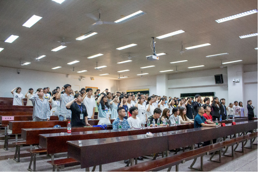 第二十一届团委、学生会各部门轮流进行工作职能简介、招新情况简介与工作目标简介。团委第二副书记王永静带领与会全体成员完成宣誓。“文以载道,薪火相传”,第二十一届团委、学生会正式捧过接力棒踏上征途。