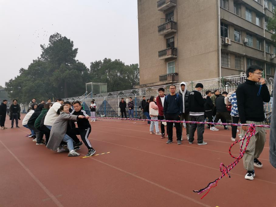 党委研究生工作部主办,校研究会、研究生团委承办,各院系研究生分会共同协办。本次趣味运动会分为三个环节,首先是拔河比赛,其次是跳大绳,最后是趣味接力。各院队伍按9号抽到的编号决定顺序、拔河比赛为淘汰赛制根据抽签两两对决,赢者晋级,输者淘汰。和拔河的淘汰赛制不同,跳大绳和趣味接力赛则采取单轮决胜制,根据单轮的表现评定名次。