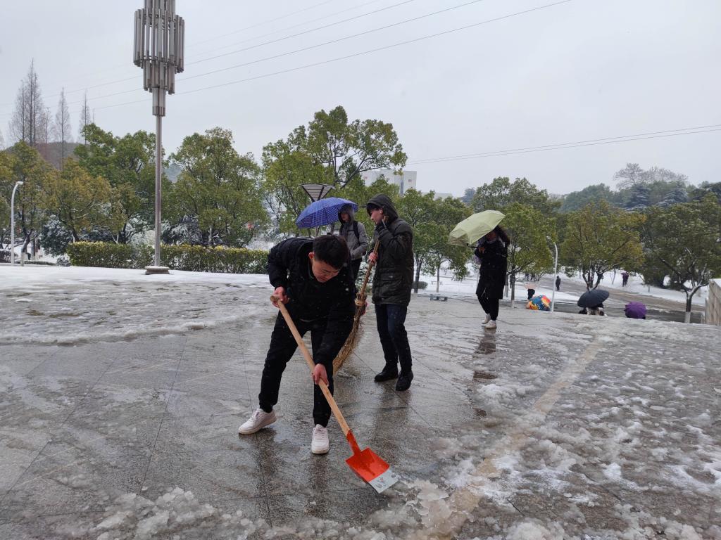 组织部分研究生党员、研究生学生干部志愿除雪,为哔咔漫画