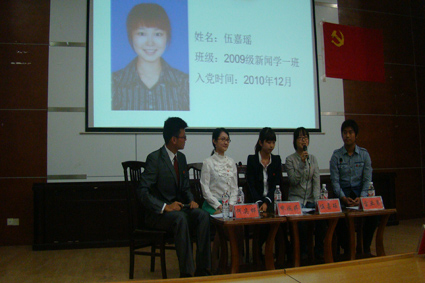 谈及学习,成绩一直名列前茅的申婉婷认为,“大学是‘走出式’学习,学习方法没有定式,学生可以自主选择。”她建议大家要系统学习,积极实践,广泛涉猎,但同时要认真对待专业课程。雷亚男补充道,“作为文新院的学生,我们应多读书,读好书,锤炼自己的说与写的能力。”关于英语,伍嘉瑶与何奕桦一致认为英语在当今社会正逐渐成为一种必需品,专业需要英语,竞争需要英语。她们指出,要学好英语,首先态度上要重视,其次行动上要坚持。在社团活动方面,曾担任过哔咔漫画 团委学生会主席的雷亚男表示,参与学生工作能够历练自身,促进自我成长并收获亲密无间的友情、弥足珍贵的爱情甚至出门在外难以体验到的亲情。在实习方面,曾经在《邵阳日报》,CCTV驻湖南记者站等多家媒体实习的伍嘉瑶分享了自己的经验,“实习应勇敢争取,要学会厚脸皮,我很多次实习机会都是在软磨硬泡中争取到的。”雷亚男认为,实习是让自身感受社会,让社会接受自己的过程,大家要摆正心态,珍惜这个过程,享受这个过程。最后,四位嘉宾分别讲述了自己的入党经历与感受,他们一致认为共产党员神圣而光荣,能成功入党,自豪之时,也感受到肩上沉重的责任,他们将为此继续努力,一路前行。