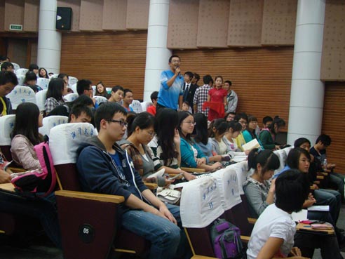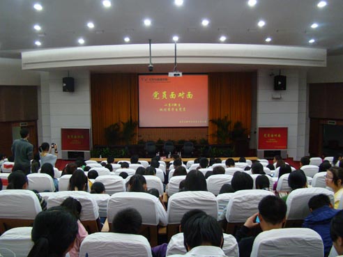 院报《文心报》社长的肖丽坦言一年的社长经历不仅加强了对自己的认识和胆量,也改善了其做事态度及解决问题的思考方式。同时兼任班委、积极参加志愿服务活动的她认为“每件事都能真正按时又踏实地做好,平衡好学习工作活动的时间不成问题”。而关于实习,有丰富实习经历的左琳建议新生大学里定要做好人生职业规划,学好专业知识之余把握机会锻炼自己,弥补不足,且多与老生交流经验,可少走弯路。她提醒大家在今后的实习中要“多做举手之劳的事;学习不分校内校外,多积累”。最后,就如何做好一名党员,获得过“2011年度湖南省优秀大学生党员”称号的郝婕妤细说个人体悟:要做一个积极进取、奋发向上,严于律己、脚踏实地,宽容善良、坦荡从容、淡泊名利、宠辱不惊的人。她提醒新生党员一定要牢记党员名后所背负的义务责任与伟大使命。随后的提问互动环节,现场气氛活跃,学生反映热烈,四位老党员就新生所提问题做出诚恳回答,赢得在场学生敬佩的掌声。
