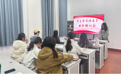 党委在文科楼116会议室举办党支部宣传委员业务培训,下辖9个学生党支部宣传委员、党务助理参会,组织员李笔戎老师主持会议。