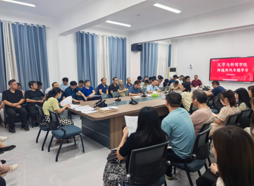 于文科楼214会议室召开教职工大会,开展师德师风专题学习。会议由院党委书记周鹏飞主持,全体教职工参加。