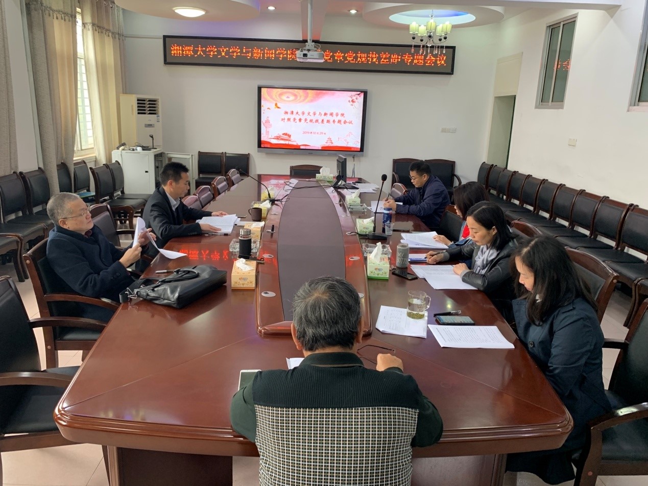 2019年10月29日下午,学院党委在文科楼317会议室召开对照党章党规找差距专题会议,学院院党委委员参加本次会议,会议由院党委书记赵猛主持。