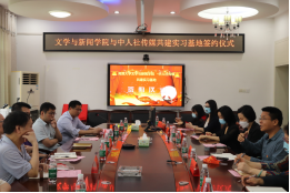 与中人社传媒共建实习基地签约仪式在第三教学楼317会议室举行。院长雷磊、院党委书记资义平、副院长宋德发、党委副书记周鹏飞、副院长刘晓丽、副院长田华、特聘教授唐湘岳与中人社传媒社长、总编辑薛国华带领的工作团队共同出席此次签约仪式。签约仪式由周鹏飞副书记主持。