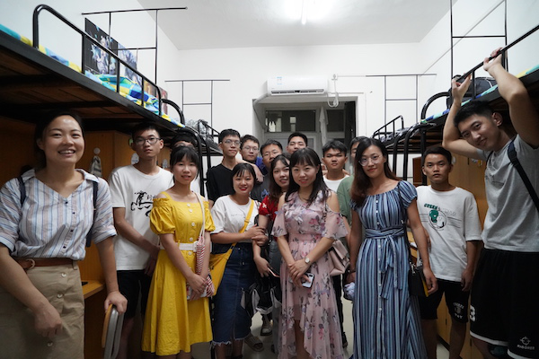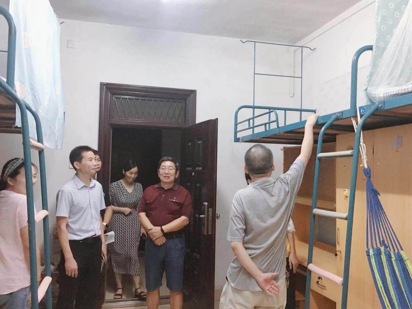 新生的住宿和学习情况,帮助新生尽早适应新学校和新变化,8月29日晚7点,院长李剑波教授、院党委书记赵猛老师以及季多武副院长、周鹏飞副书记、田华副院长、刘晓丽副院长、团委书记管胜昔老师、研工办林瑜老师、新生班主任等老师与学生干部、新生辅导员一道,走访了新生宿舍,看望并慰问新生。