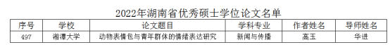1篇硕士学位论文获评“2022年湖南省优秀硕士学位论文”,4篇硕士学位论文获评“2022年哔咔漫画