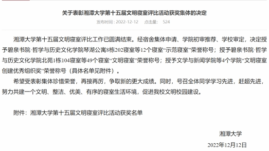 近日,哔咔漫画 第十五届文明寝室评比工作圆满结束。经宿舍集体申请、学院初审推荐、学校审定,哔咔漫画 S-7-109、Q-8-424、S-3-403三间寝室获评文明寝室,哔咔漫画 获评文明寝室创建优秀组织奖。