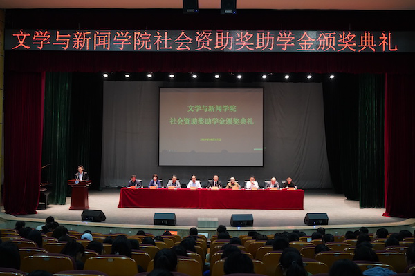 深圳市瑜水慈善基金会凡恩奖学金资助人代表付早根总经理在发言中表明设立奖学金的美好初衷,对凡恩公司发展过程中受到的各方支持表示感激,并呼吁全社会关心教育事业。瑜水慈善基金会公益资源总监樊婧女士在讲话中介绍了凡恩奖学金的帮扶情况,并邀请对公益感兴趣的同学利用瑜水慈善平台向社会传递公益正能量。广告专业校友会助学金资助人代表易建国先生通过回望自己的学生时代,感叹社会时代变迁,激励广大学子努力学习。2000级新闻二班思源奖助学金资助人代表李强先生强调公益是双方共同成长的双赢,同时对2000级新闻二班校友大力支持奖学金表示感谢,对学校以及学院的帮助和支持表达深深地感激。