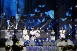 晚会以“群星闪耀时”为题,分为“易燃易爆炸”“送你一朵小红花”“闪闪发光的我们”三个篇章,涵盖了歌曲串烧、朗诵、舞蹈等7个精彩节目。