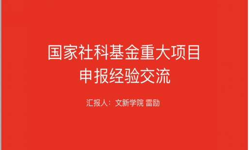 社科项目申报获批的情况,并对近期申报工作做了安排部署。在交流会上,刘长庚教授、肖冬梅教授、黄显中教授、雷励教授作了经验交流发言,多角度、多层次探讨了重大项目申报的相关准备及具体过程,特别是对具有重大学术价值、重大学术影响问题的深度挖掘,以及学术资源的整合与学术团队的建设。