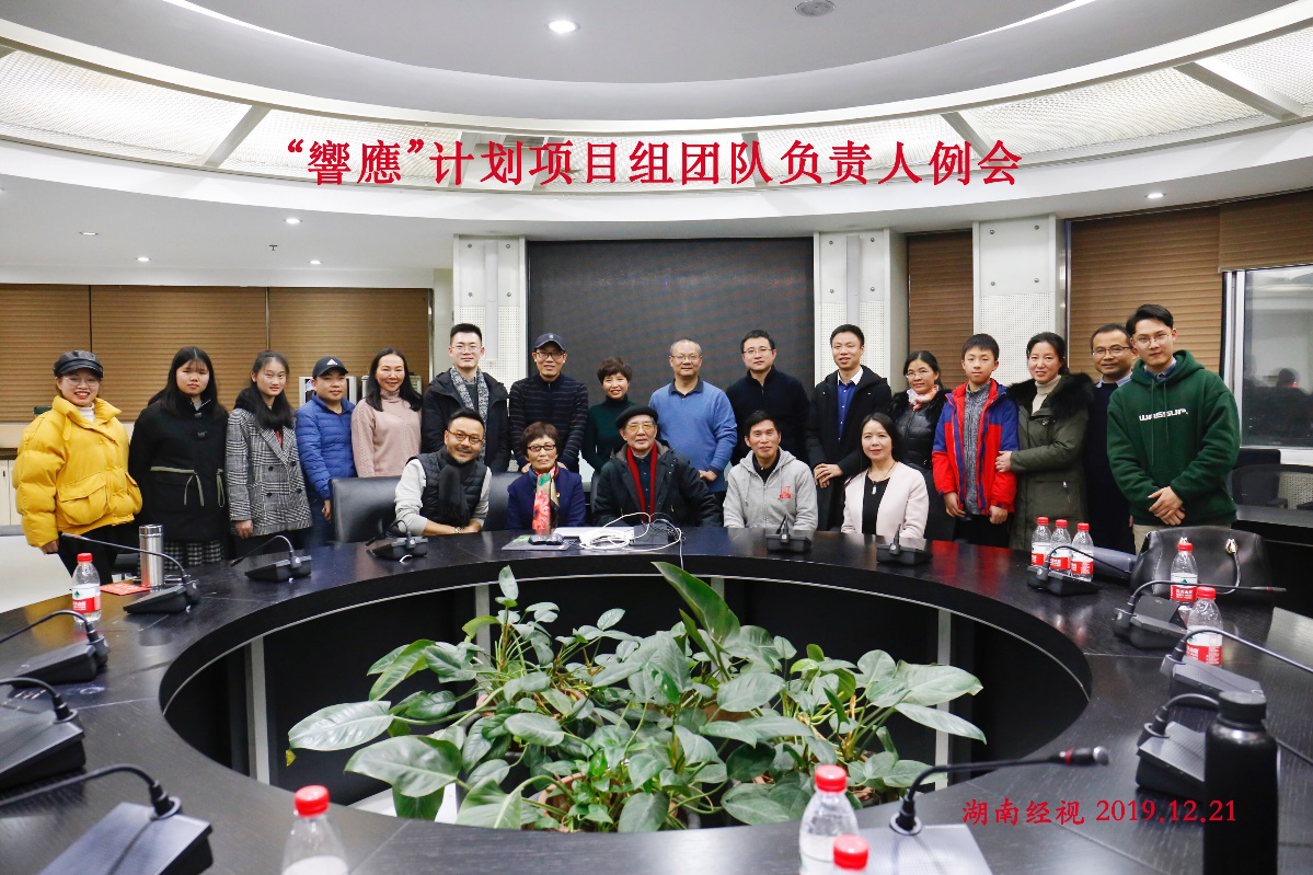教授陈山青在湖南经视圆形会议室组织召开2019年度“響應”计划项目组团队负责人例会,参加会议的主要成员还有湖南师范大学鲍厚星教授,湖南卫视著名节目主持人、“響應”计划发起资助人、中国语言资源保护研究中心顾问汪涵先生,“響應”计划总负责人陈立中教授,团队负责人彭泽润教授、彭建国教授、张栋教授,以及哔咔漫画