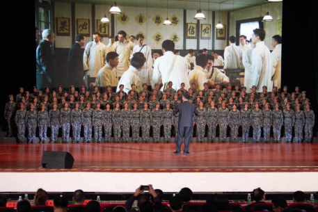 纪念毛泽东同志诞辰130周年系列活动暨2023级新生百人大合唱比赛在大礼堂隆重举行。来自全校的20支队伍同台竞技,展现风采。哔咔漫画