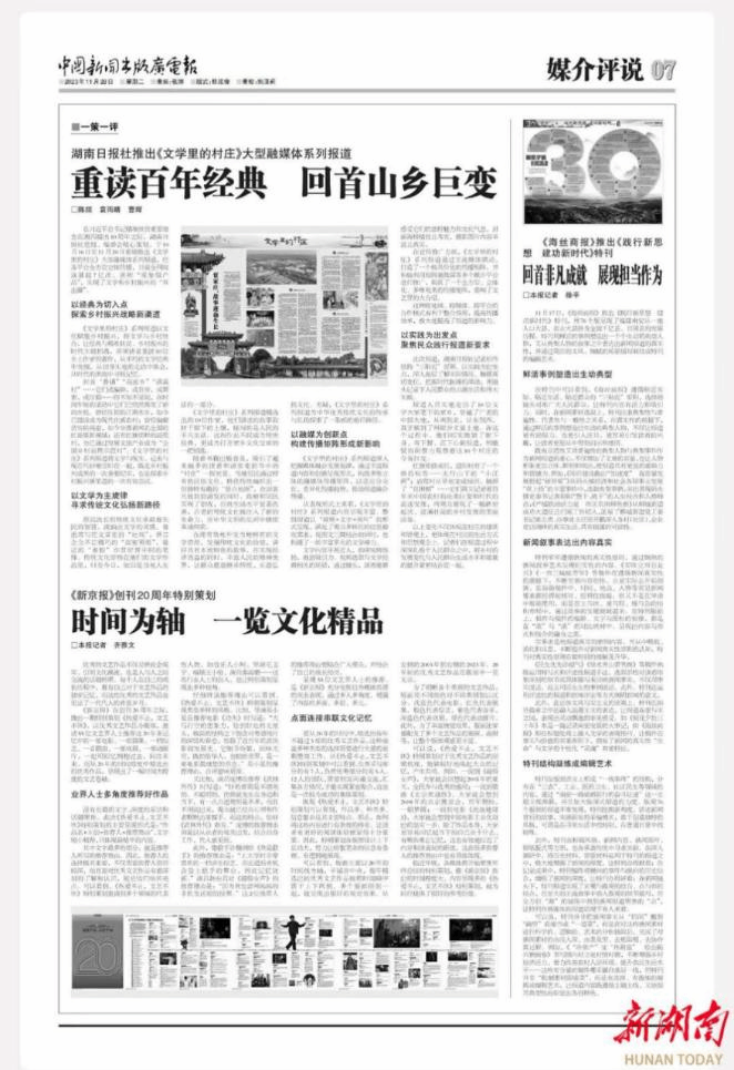 《重读百年经典 回首山乡巨变》一文是针对湖南日报社推出的大型融媒体系列报道《文学里的村庄》而作的新闻通讯。《文学里的村庄》系列报道由湖南日报社党组、编委会精心策划,于10月16日至11月20日重磅推出,目前全网阅读量超7亿次,堪称“现象级产品”。该通讯全文近两千字的篇幅从多个层面深入剖析,对系列报道的成功经验和独到之处进行了总结,写作角度新颖,观察细致入微。
