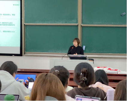 逸夫楼第二阶梯教室如期举行。本次讲座邀请了《时代邮刊》副总编辑、湖南省期刊协会副秘书长黄菲老师主讲,新闻学系陈康老师主持。黄菲老师以《一本期刊的诞生 一个期刊人的职业养成》为题,以《时代邮刊》杂志为例,向2022级新闻学系学生介绍从选题到成刊的生产过程以及期刊人素养的养成。