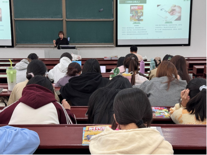 讲座伊始,黄菲老师一行向到场同学分发了约300本《时代邮刊(新青年)》、《时代邮刊(新中年)》。《时代邮刊》是一份社会文化类大众刊物,年均期发量超百万份,获得中国百强报刊、中国邮政畅销期刊、湖南出版政府奖、湖南最具影响力期刊等荣誉。