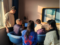 项目组与胡老先生因“乡音”再次相遇。山青老师特意穿上“響應”计划团服,和胡老先生一起回忆当时的调查时光,时不时发出爽朗而会心的笑声。