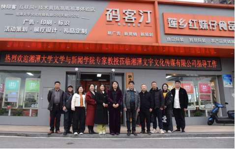 广告系教师孙丰国、王苑丞、向宇、陈暖一行4人赴湘潭文宇文化传媒有限公司调研。湘潭市炎黄文化研究会会长唐跃龙、云湖桥剪纸第四代传承人冯程程女士等一同参加交流座谈。
