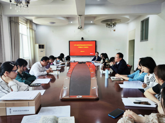 在317会议室召开2025届本科毕业论文中期检查工作座谈会,校本科教育教学工作督导团成员罗泽意教授、郭明浩副教授,校教务处教务科胡春莲老师,学院本科教育教学工作督导组组长、院长雷磊,督导组成员、副院长宋德发、田华,院教务办负责人,毕业生代表参加座谈。