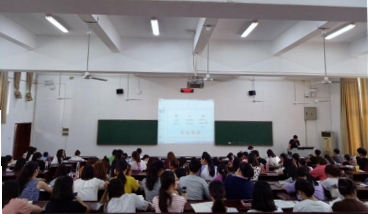 李中以大家熟悉的有关台风“山竹”的新闻开场,结合多个新闻视频,阐述“为什么要做出镜记者?”“怎样做出镜记者?”等问题,从形象、好奇心、沟通等方面讲解如何面对镜头。李老师强调作为出境记者要具备扎实的新闻功底、现场观察判断的能力、清晰而准确的口语表达等素质,同时还要求在采访中善于捕捉细节、让自己融入现场、有情绪的带入。