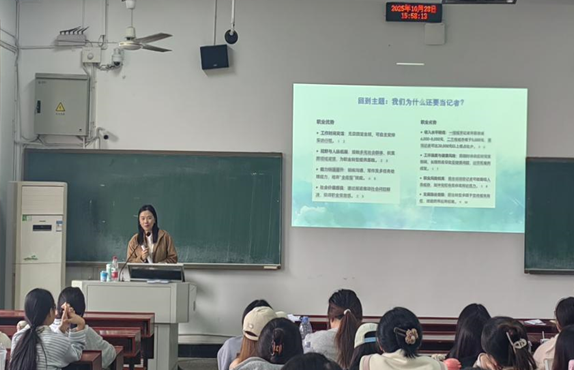 在讲座尾声,刘老师回归主题“我们为什么还要当记者”。她强调,虽然记者的光环与吸引力或许不如往昔,但时代永远需要新闻记录者,记者既是时代的观察者也是历史的初稿人。她鼓励热爱新闻的同学们不要放弃,积极投身于新闻事业中。
