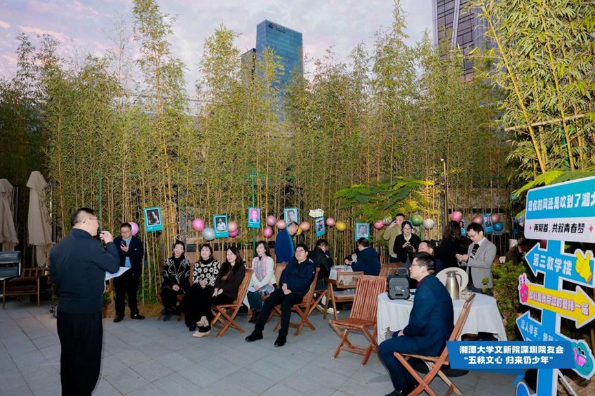 领导与老师的远道而来表示热烈欢迎,向为此次活动奔波筹备的校友志愿者们表达诚挚谢意。他表示,深圳校友会始终以“联结校友、反哺母校”为己任,未来将持续强化桥梁纽带作用,凝聚在深文新人的智慧与力量,为学院与母校的发展添砖加瓦。