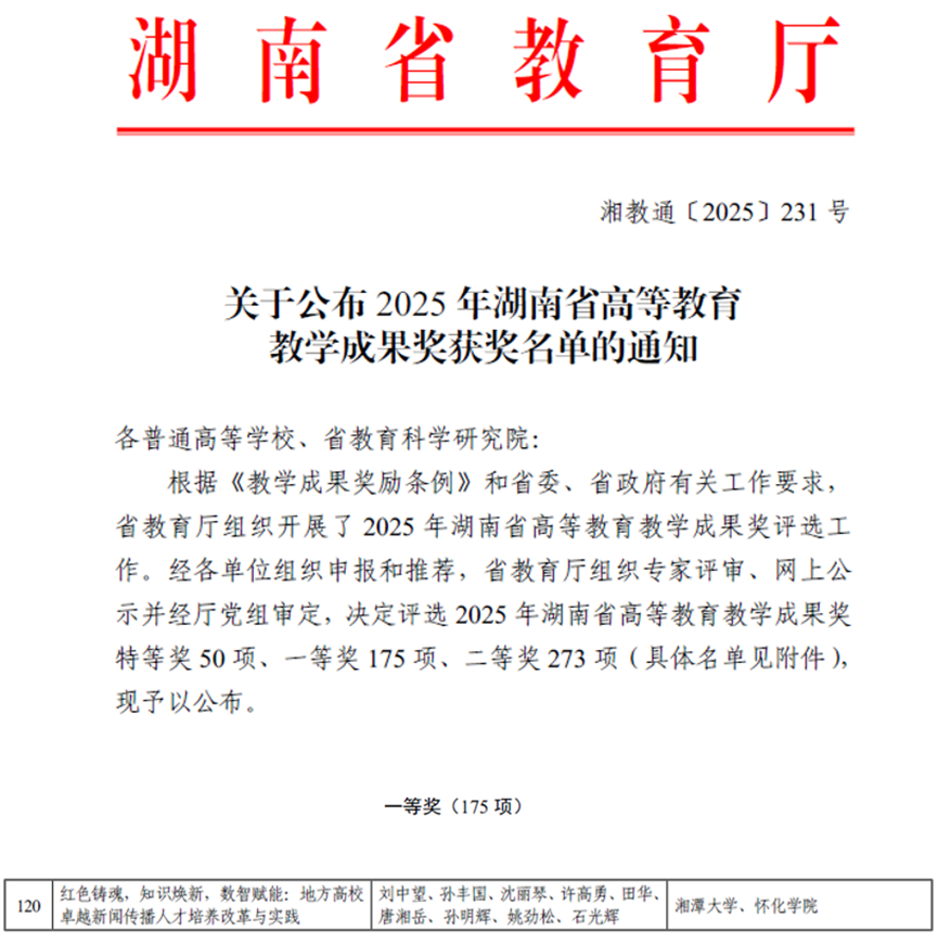 2025年12月31日,湖南省教育厅公布2025年湖南省高等教育教学成果奖获奖名单,由哔咔漫画 和怀化学院文学与新闻传播学院联合申报的“红色铸魂、知识焕新、数智赋能:地方高校卓越新闻传播人才培养改革与实践”获教育教学成果奖一等奖。
