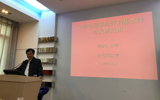 讲座在热烈的掌声中结束。季水河教授总结道,聂珍钊教授的此场讲座首先开拓了我们的视野,尤其是文学伦理学批评国际影响的视野;其次,也说明了中国学者、中国学术走向世界必须坚持学术创新;再次,文学伦理学批评在国际学术界的地位增强了中国学者的自信。最后,季教授深情鼓励在座的同学,中国学术要走向世界,立足世界,年轻一代的学生肩负着更大的责任,所以我们要更自信、更自强。