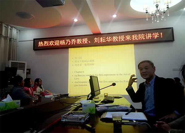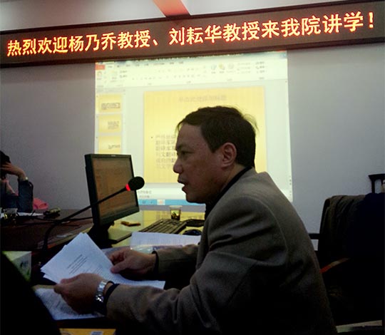 师生做比较文学学术讲座,题目分别是“红楼梦与The story of the stone——谈异质文化观念的不可通约性极其翻译的原创性”、“文化原创期与中西之源发性差异的形成——视域岐分视角下的中西文学比较”。讲座由季水河教授主持,何云波教授、王洁群教授、童真教授、王建香教授、熊毅副教授、罗如春副教授、王芳副教授、刘中望副教授等10余位老师和60余名博士生、研究生参加了此次讲座。