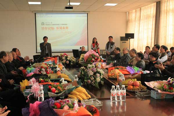 见面会在隆重、温馨的氛围中结束。会后,师生们在湘大的标志性建筑——文科楼前合影留念。