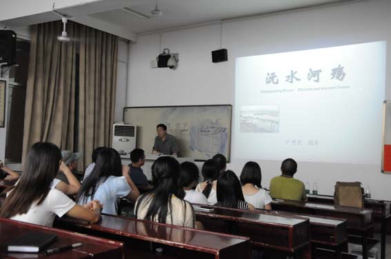 接着他为大家介绍了自己的获奖作品,从专题摄影的由来到对专题摄影的思考,并讲述了他是如何用20多年的时间,用摄影去记录作为公共文化现象的毛泽东形象。同时他为同学们介绍了“荷赛”这一最具影响力的世界新闻摄影奖项,并生动地讲述了自己参赛及领奖过程一些有趣的小故事。从摄影主题的选择,到每一张照片的精微工作,再到参赛作品的遴选,他向同学们展示了一个杰出摄影师的工作过程和风格。接着他带领同学们一起欣赏了“吉木成佛”、“岜沙变迁”等摄影专辑,鼓励大家用相机去记录我们的时代。