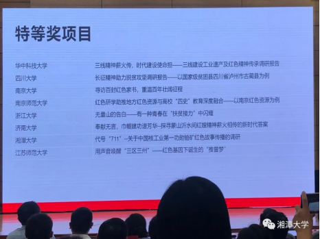 研究生邝宇轩、陈雯婷、刘丹、尹曼舒,物理与光电工程学院的研究生汪易慧芝的调研项目《代号“711”——关于中国核工业第一功勋铀矿红色故事传播的调研》荣获全国特等奖。