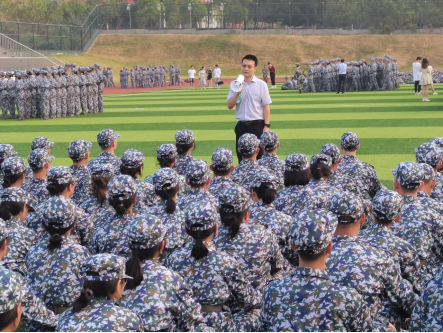 院党委书记资义平向新生表示关心和慰问,嘱托学生们要高标准、严要求地完成军训任务,在军训中磨练意志、强健体魄,培养爱国爱校精神。