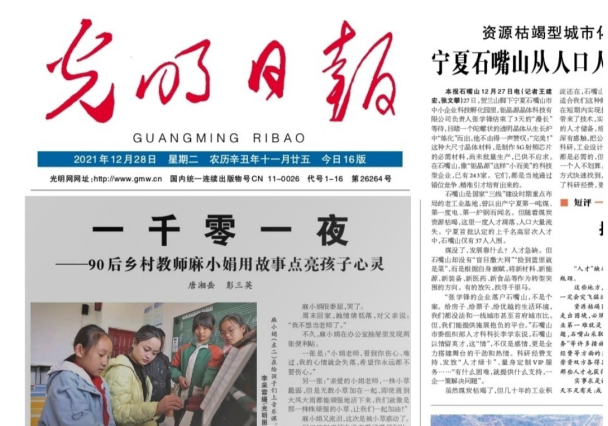 《光明日报》2021年12月28日01版发表了题为《一千零一夜——90后乡村教师麻小娟用故事点亮孩子心灵》的文章,哔咔漫画