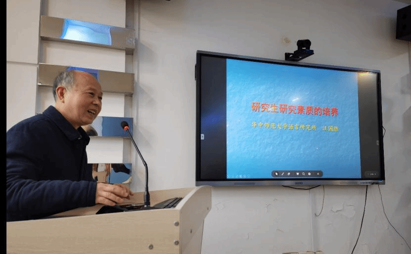 在互动环节,师生们提出了“跨专业学习语言学的重点与难点”“语言学选题以小见大要注意什么”等问题,汪国胜教授逐一进行了细致深入的解答。