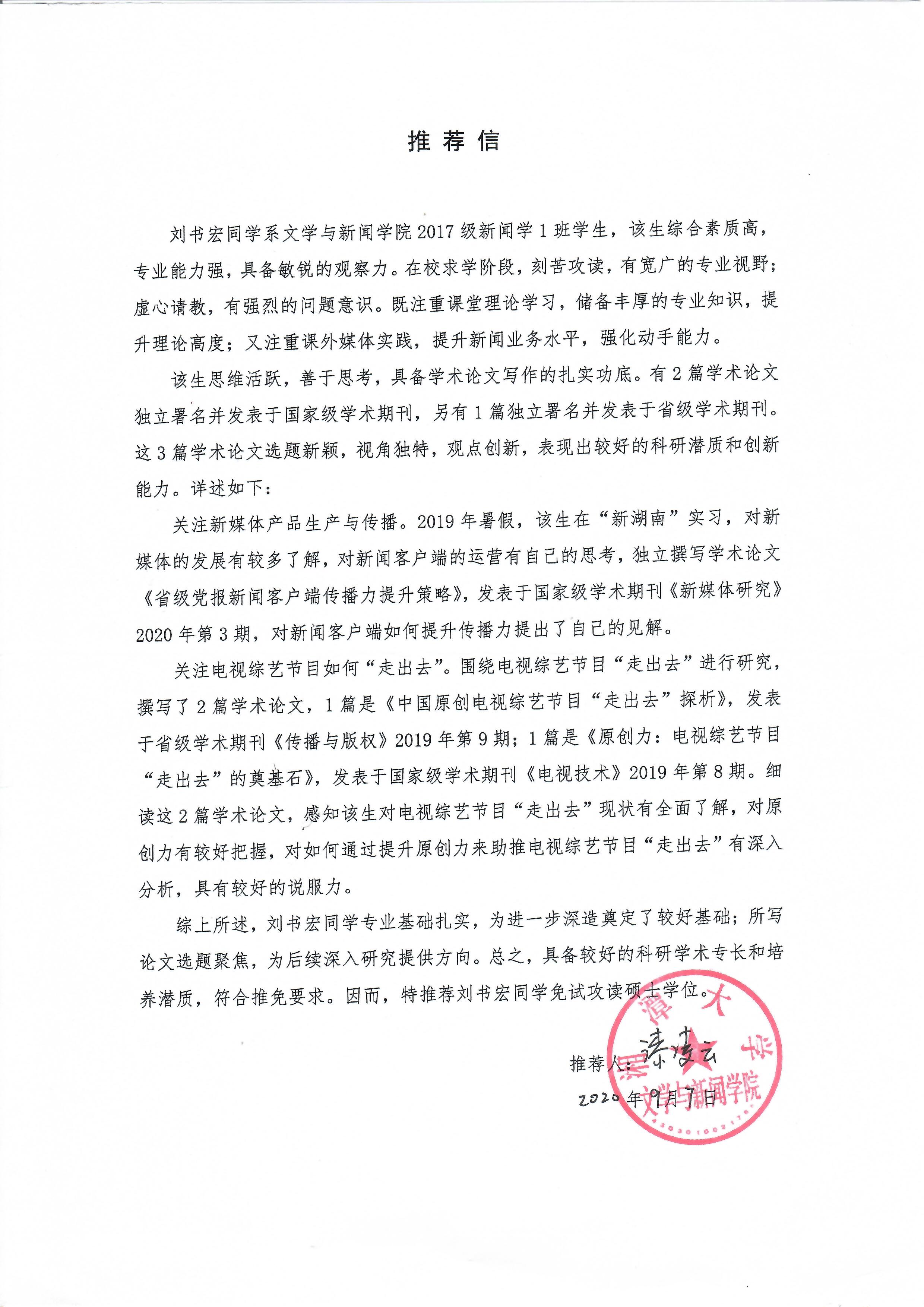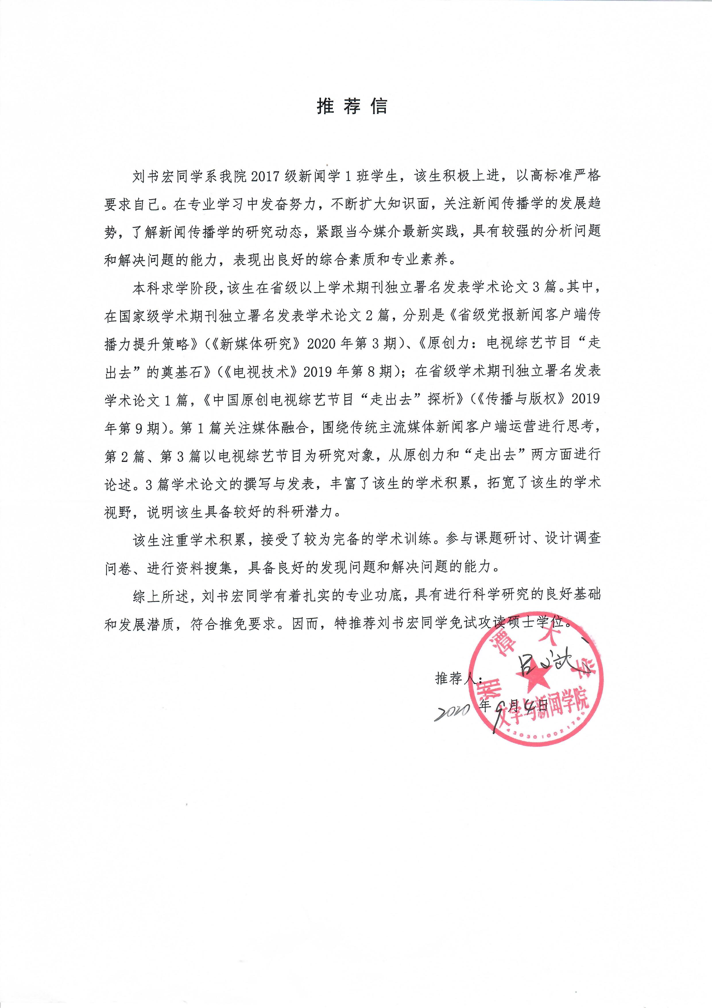| 新闻学 | 刘书宏 | 教授联名推荐 |