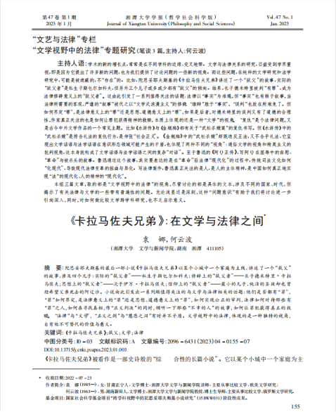 教师袁娜博士与何云波教授合著的论文《<卡拉马佐夫兄弟>:在文学与法律之间》刊载《哔咔漫画