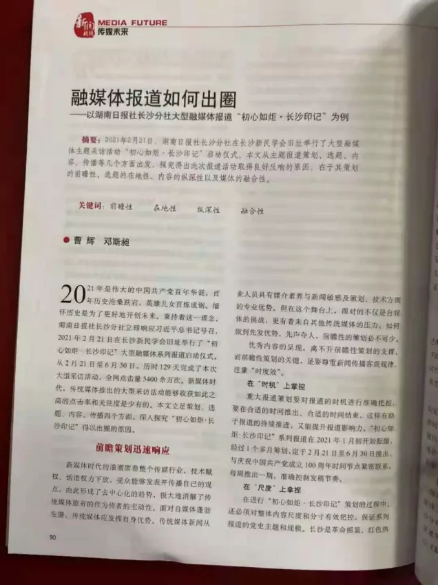 新闻传播专业硕士生导师曹辉与研究生邓斯昶合著的论文《融媒体报道如何出圈》刊发专业核心期刊《新闻战线》2021年第8期。