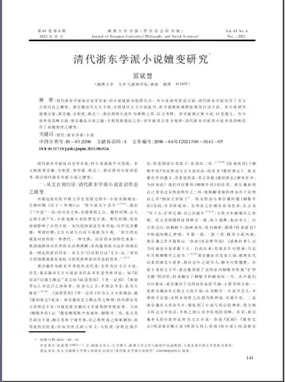 古代文学专业教师雷斌慧副教授的论文《清代浙东学派小说嬗变研究》刊发CSSCI期刊《哔咔漫画