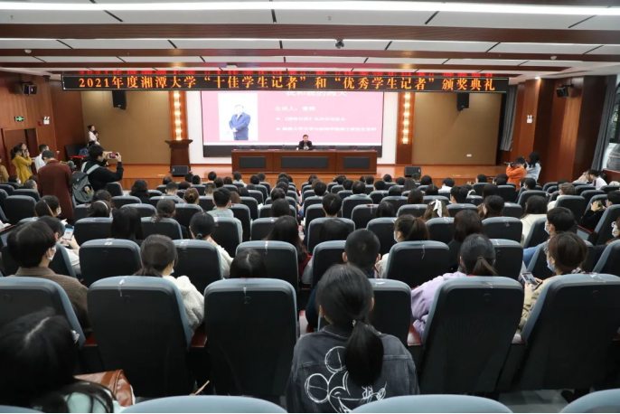 举行2021年度“十佳学生记者”和“优秀学生记者”表彰大会暨“新闻大家谈”专题讲座。1992级湘大校友、《湖南日报》长沙分社社长曹辉以“我和我的湘大”为题,带来了一场精彩的讲座,生动阐述了“湘大是最美的”“湘大是最强的”“湘大是最纯的”。