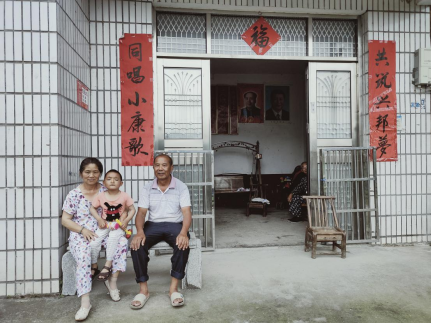 (洪帽南与妻子孙子坐在家门口)