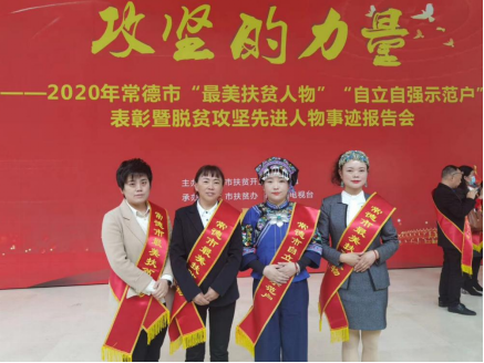 2020年4月,省委副书记乌兰来壶瓶山考察脱贫工作,第一次见大领导,我又激动又紧张,特地穿上土家族服装,向她介绍店里的产品。乌兰副书记称赞我做得不错。10月,我被评为常德市“自立自强示范户”,还在表彰会上发了言。