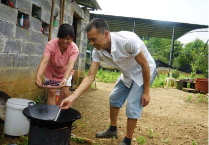 一座深山,一间老屋,炉子燃着柴火,升起的火星溅到了炉边两个人身上。他们偶尔看着对方,眼里带着笑。屋主人是湖南省保靖县迁陵镇腊水村的土家族青年李焱科和苗族姑娘石银凤夫妇。