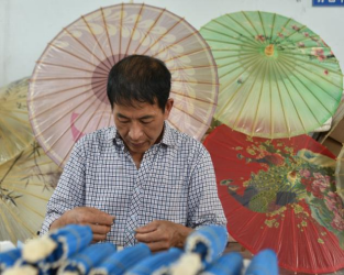 手工做纸伞,工序又多又麻烦,价格贵了不好卖,价格便宜不划算。不知不觉,就成了贫困户。