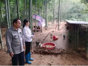 姚所长三天两头来探访,从养殖规模、养殖技术等方面给了很可贵的建议。姚所长建议我们不要把养殖局限在鸡舍里,要让土鸡有充分的运动。于是我们在屋后的竹林里搭建架子。